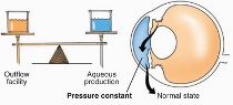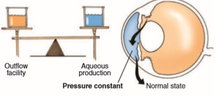 [녹내장: 안방수 생성량에 비해 안방수 배출량이 적어 불균형이 발생, 안압이 상승하게 됨]