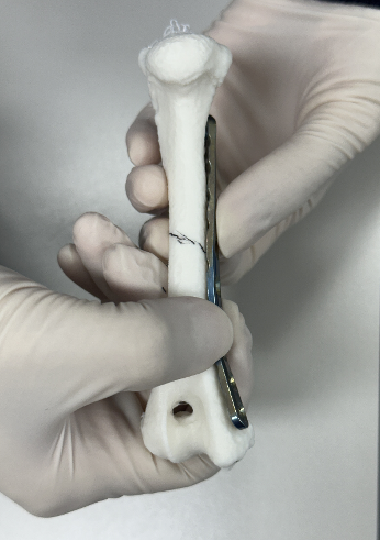 실제 수술에 들어가기 전, 3D로 출력된 뼈 모델에 골절 수복용 플레이트를 미리 성형하여 수술 시간을 단축하고 수술 시 발생할 수 있는 오차를 줄이는 데 도움이 될 수 있습니다.