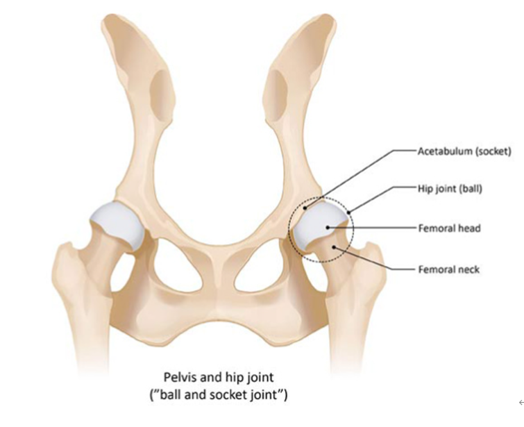 골반의 고랑안에 허벅지뼈의 골두가 접해있는 관절로 뒷다리를 회전시킬 때 도와주는 역할을 합니다