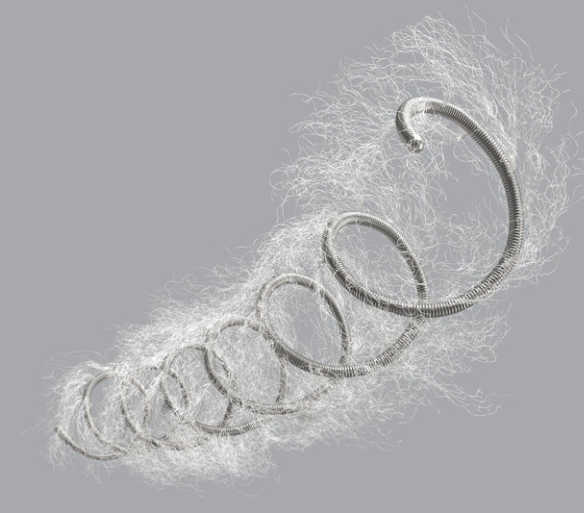 코일은 섬유질(synthetic fiber)이 달려있어 혈전을 만드는 역할을 하게 되며, 시간이 지날수록 형성된 혈전에 의해 이상혈관은 완전히 막히게 됩니다