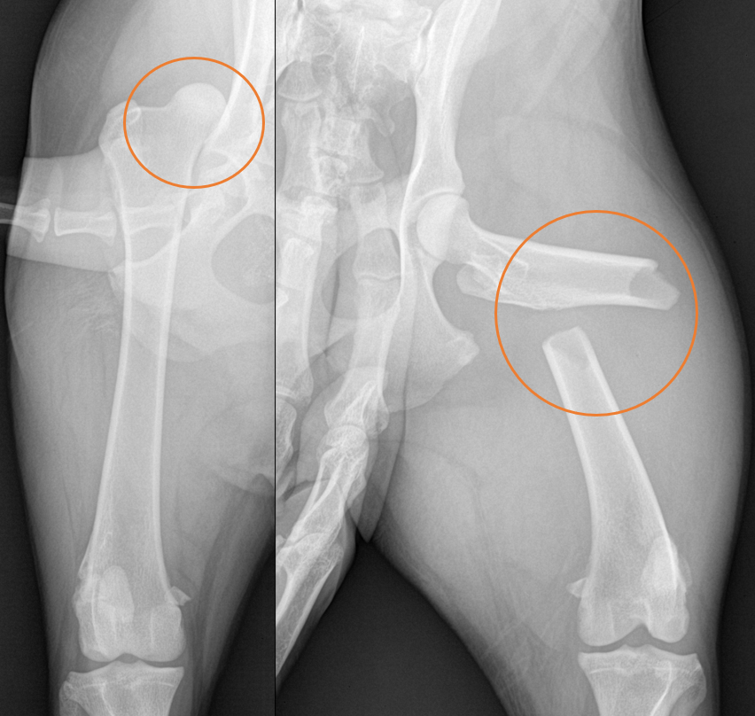 대형견 강아지 대퇴골 골절 및 고관절 탈구 방사선 영상 / 출처: 에스동물메디컬센터