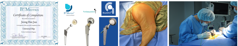 에스동물메디컬센터는 국내에서 유일하게 BioMedtrix, BlueSAO, Vetmaster 3社 인공관절 인증 과정을 수료한 ‘정희준 원장님’이 환자 상태에 맞는 맞춤 수술을 진행합니다.