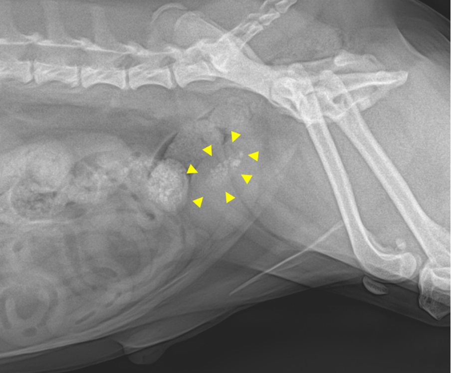 강아지 방광 내에 확인된 다수의 결석들 출처: 에스동물메디컬센터