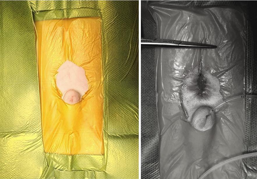 에스동물메디컬센터에서는 인(人)의 수술과 동일하게 감염 최소화를 위해 모든 수술에서 포비돈 소독제가 도포되어 있는 아이오반 멸균 테이프 부착 후에 수술을 진행합니다.