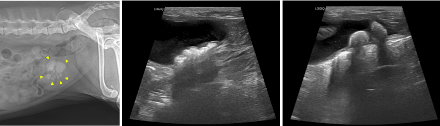 보호자님과 상담 후 x-ray와 초음파 검사를 진행했습니다. 그결과 방광 내 다수의 결석이 재차 확인되었습니다.